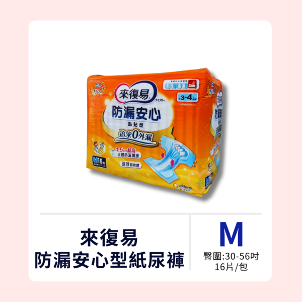 【來復易】防漏安心型紙尿褲 M號 (16片)